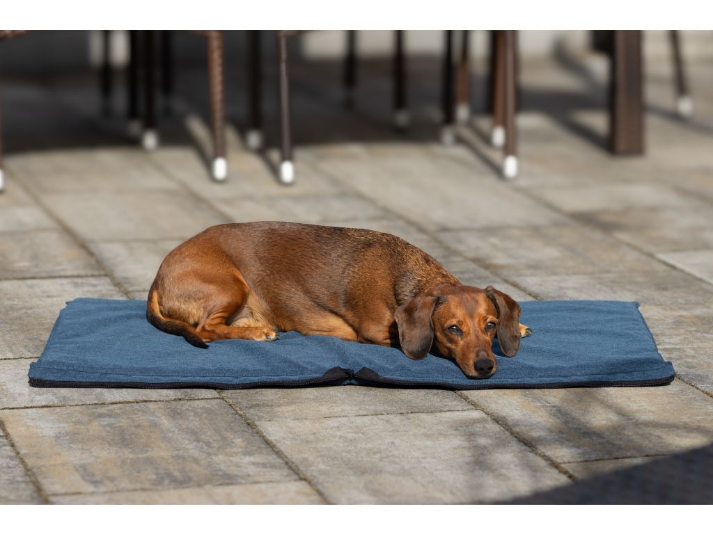 Uvnitř se ukrývá měkká matracová pěna, která poskytuje komfort pro odpočinek vašeho psího parťáka. Vrchní materiál je pevná a voděodolná tkanina, která odolá i vlhké trávě nebo nečekanému dešti.