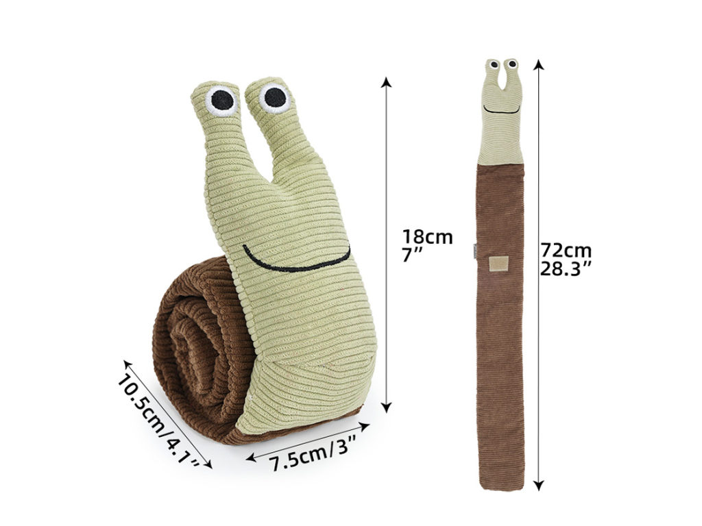 Roztomilý šnek je plyšová čmuchací hračka, která promění hledání pamlsků v zábavnou výzvu. Jeho dlouhé, nevyplněné tělíčko ukrývá více vrstev a kapes na dobroty, takže se snadno plní a skvěle přizpůsobí hře. Hebký materiál, pískátko a možnost hračku rozmotat i smotat z něj dělají ideální kombinaci pro zábavu i mentální stimulaci.