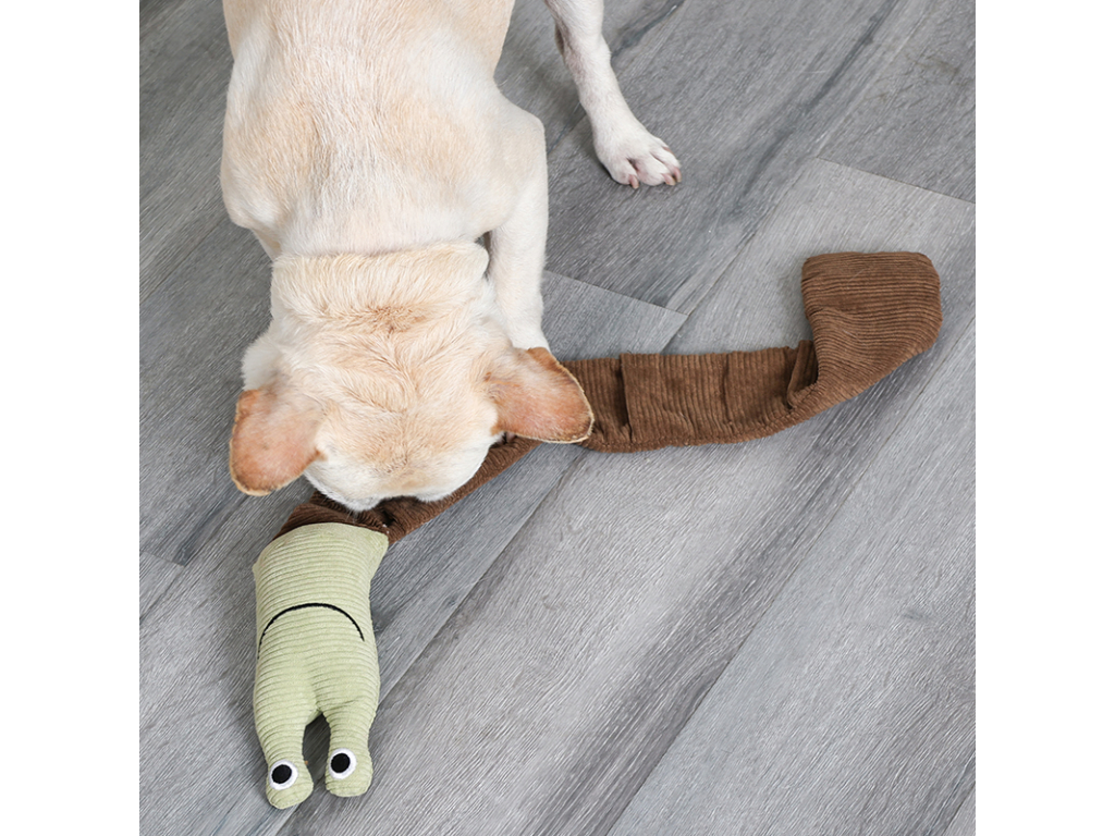 Šnek je vyrobený z měkkého, příjemného manšestru a fleece materiálu, takže si ho pejsek zamiluje nejen na hledání, ale i na mazlení. Uvnitř se navíc skrývá pískátko, které hru ještě víc oživí.