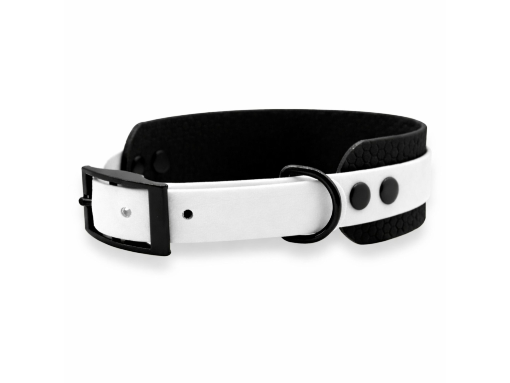 Voděodolný široký gumový obojek pro psy bílo-černý - šířka 4 cm