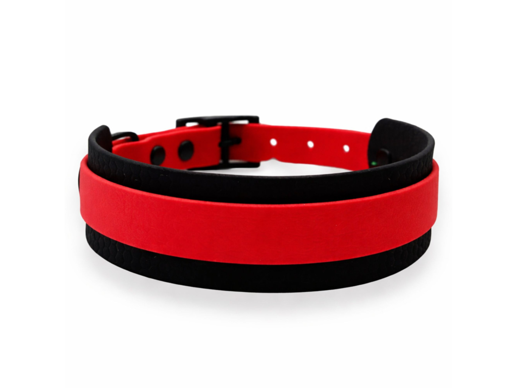 Voděodolný široký gumový obojek pro psy červeno-černý - šířka 4 cm