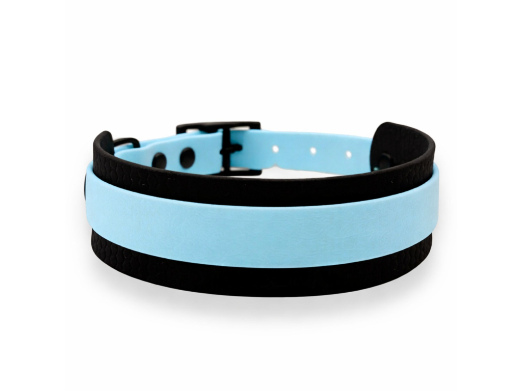 Voděodolný široký gumový obojek pro psy pastelově modro-černý - šířka 4 cm
