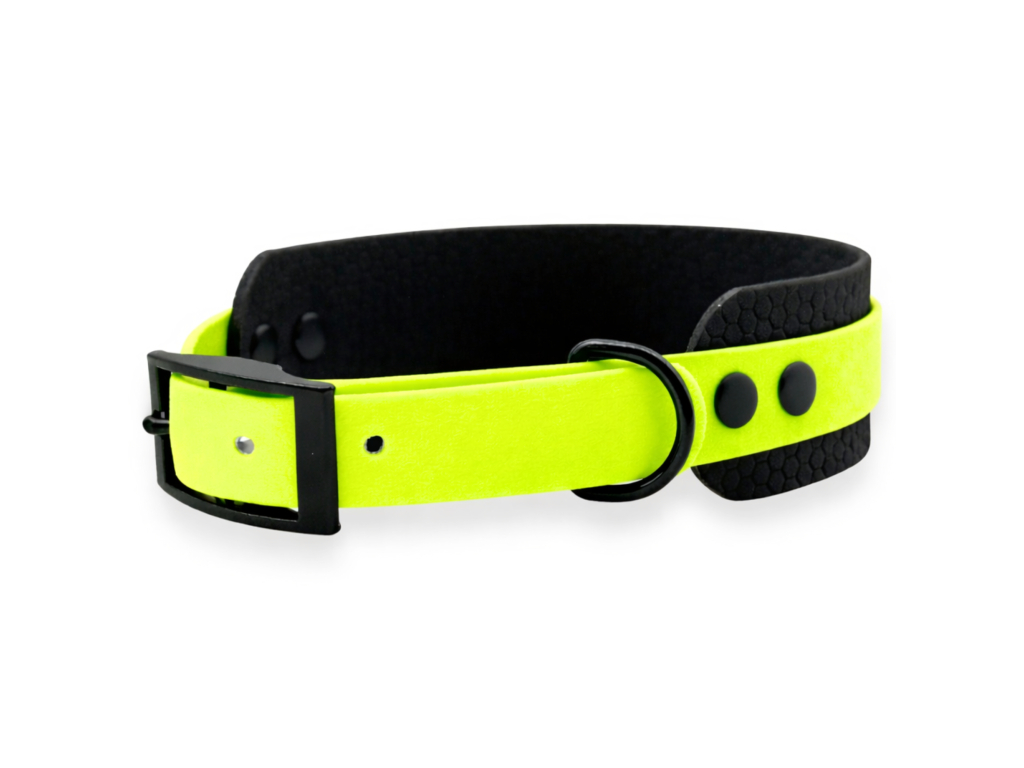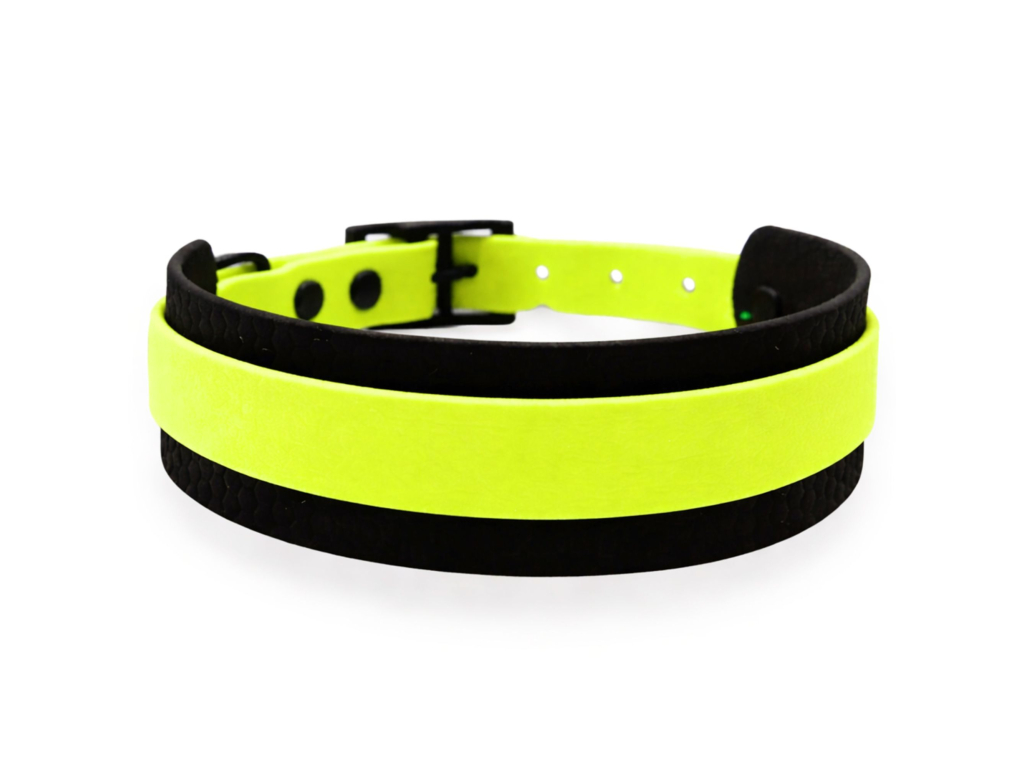 Voděodolný široký gumový obojek pro psy neonově žlutozeleno-černý - šířka 4 cm