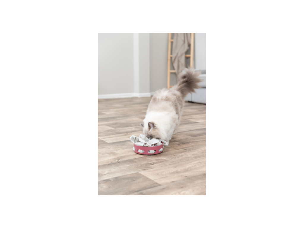 Praktická a zábavná čuchacia miska, ktorá mačke spestrí kŕmenie aj hranie. Slúži nielen ako interaktívna hračka, ale aj ako miska pre pomalé kŕmenie, vďaka ktorej sa mačka naučí jesť pokojnejšie a s väčšou pozornosťou. Pochúťky alebo granule možno na zvýšenie obtiažnosti zrolovať priamo do mäkkých strapcov, čím sa hra stáva ešte zaujímavejšou a viac stimuluje mačacie zmysly.