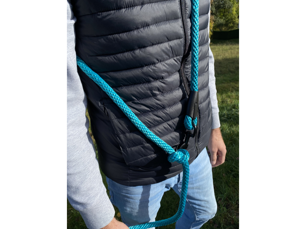 Na vodítku nájdete tri kovové krúžky, ktoré si každý sám jednoducho upevní pomocou uzla presne tam, kde mu to najviac vyhovuje. Vďaka tomuto systému si môžete vodítko prispôsobiť podľa svojich potrieb aj štýlu venčenia – krúžok ľahko posuniete a zaistíte jednoduchým uzlom, bez nutnosti špeciálnych nástrojov.