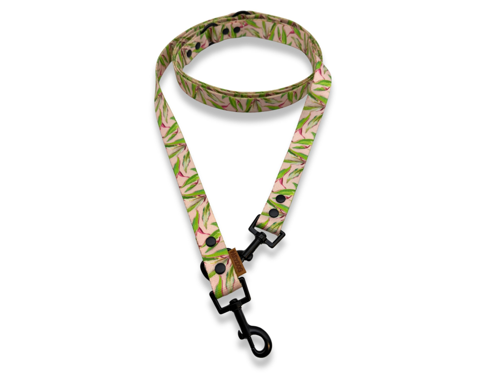 Přepínací designové vodítko PafDog®, 5 délek, vzor PINK LEAVES
