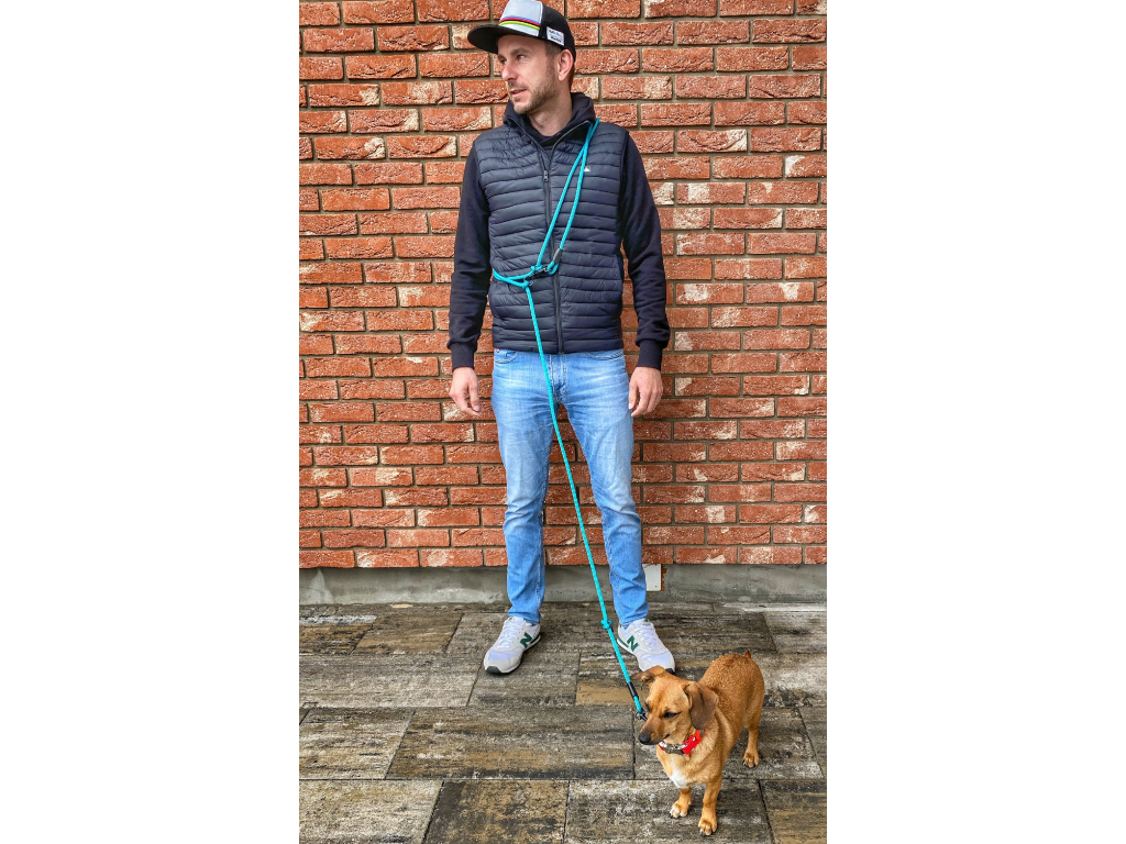 Na vodítku najdete tři kovové kroužky, které si každý sám jednoduše upevní pomocí uzlu přesně tam, kde mu to nejvíce vyhovuje. Díky tomuto systému si můžete vodítko přizpůsobit podle svých potřeb i stylu venčení – kroužek snadno posunete a zajistíte jednoduchým uzlem, bez nutnosti speciálních nástrojů.