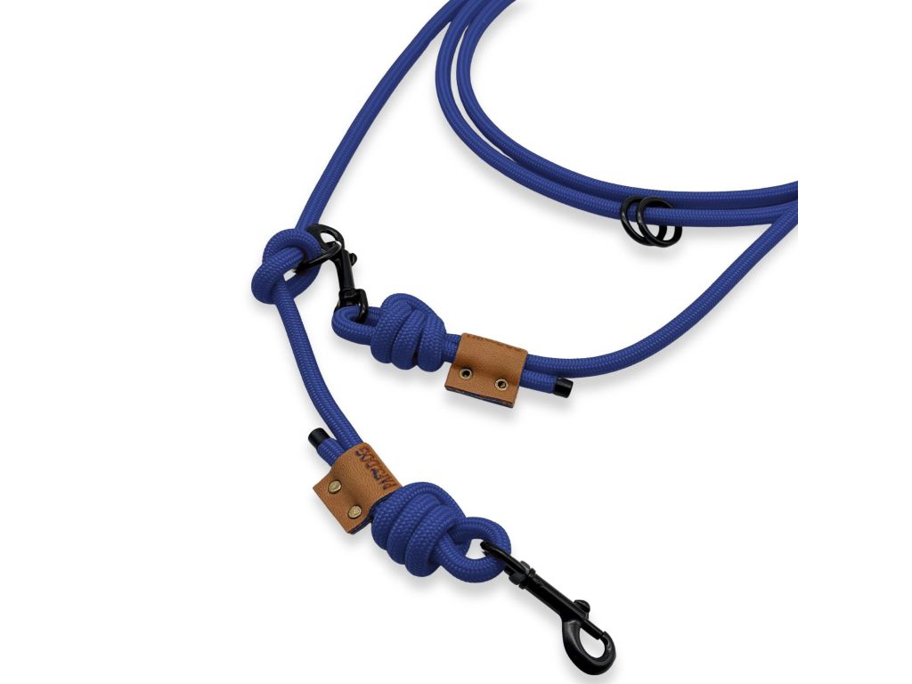 Na vodítku najdete tři kovové kroužky, které si každý sám jednoduše upevní pomocí uzlu přesně tam, kde mu to nejvíce vyhovuje. Díky tomuto systému si můžete vodítko přizpůsobit podle svých potřeb i stylu venčení – kroužek snadno posunete a zajistíte jednoduchým uzlem, bez nutnosti speciálních nástrojů.