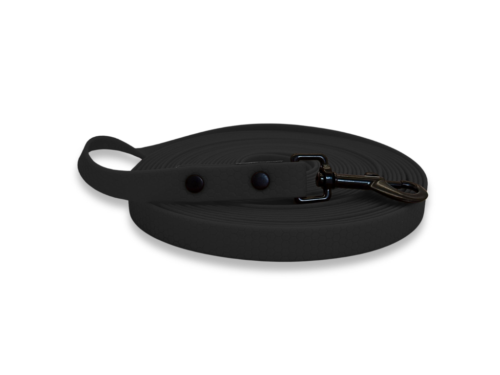 VÝPRODEJ: PafDog® voděodolné HEXA stopovací vodítko ploché, 1,6 cm, 10 M, KARABINA 70 MM - černá