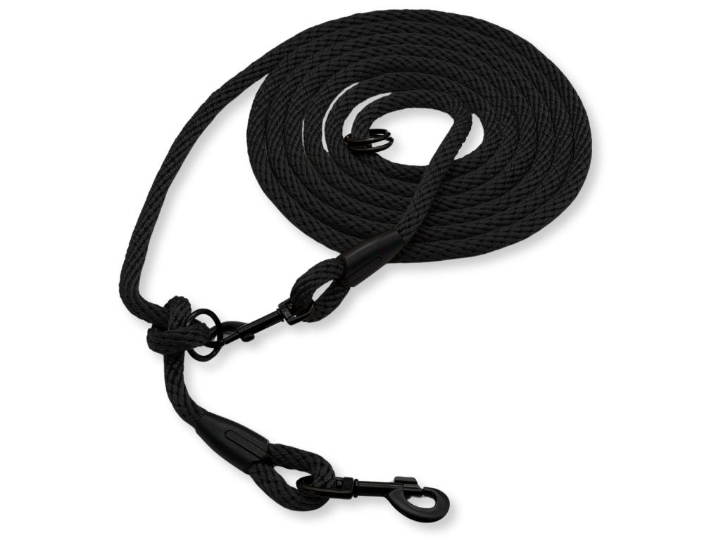 Toto vodítko je ze spiroidního lana bez jádra, které je vyrobeno v České republice. Tato lana jsou lehká a mají příjemný povrch, díky kterému vodítka neřežou ani při delším nošení nebo tahu.